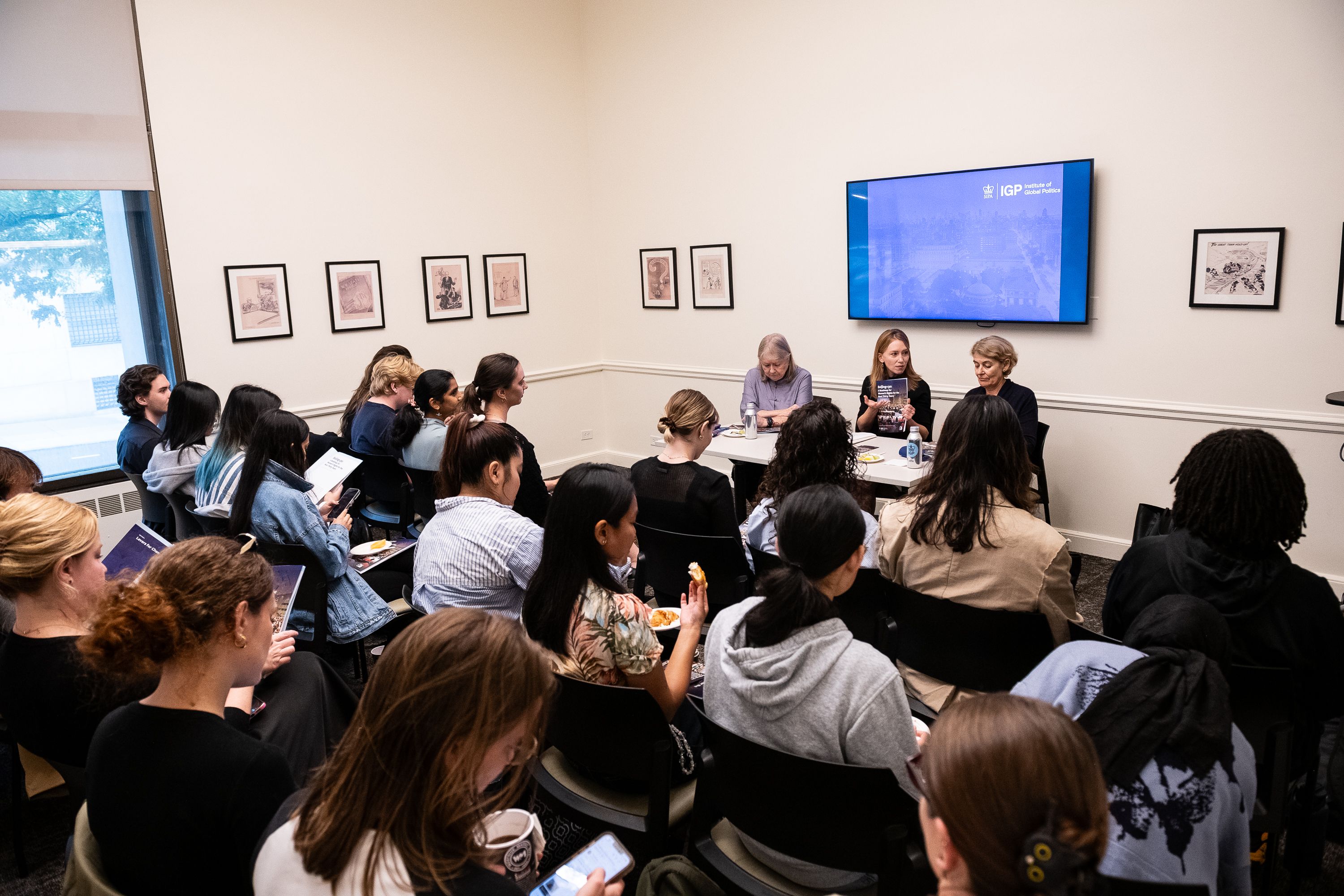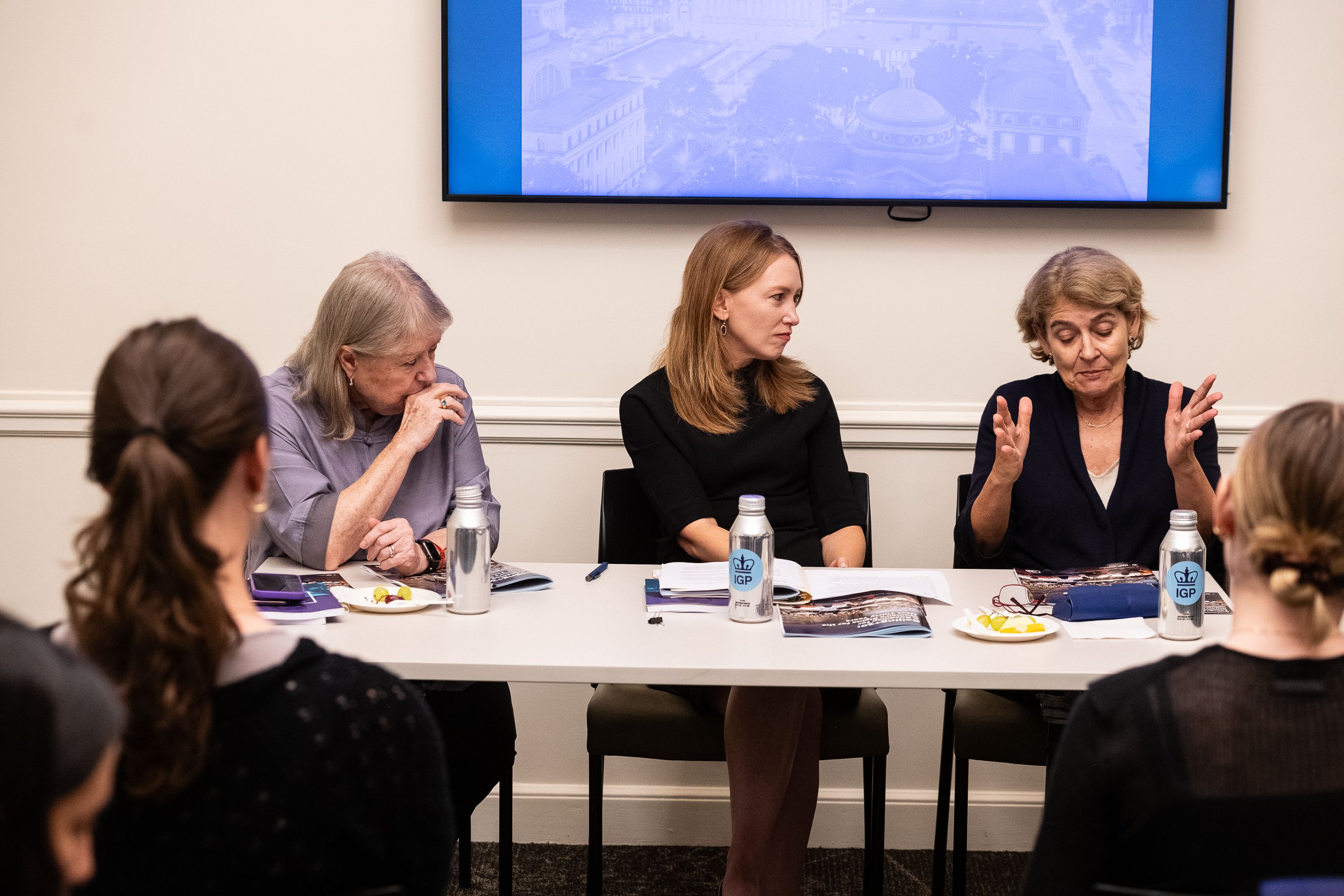 At Columbia University, GWL Voices President and co-founder Susana Malcorra and co-founder Irina Bokova led a roundtable moderated by Rachel Vogelstein, Associate Professor at Columbia SIPA and Director of the IGP Women’s Initiative. The discussion highlighted insights from the GWL Voices and IGP Women’s Initiative report, “Beijing+30: A Gender Equality Roadmap for the Next 30 Years,” exploring key policy priorities for the 21st century—including democracy and human rights, technology, economic opportunity, and conflict and climate—and identifying levers to accelerate meaningful change.