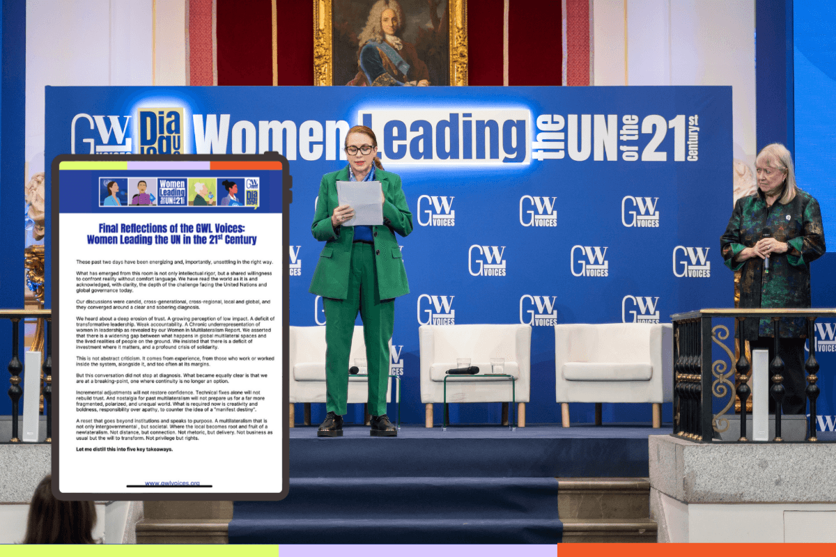GWL Voices is an organization of women leaders from all regions and backgrounds committed to building a gender-equal international system that effectively responds to today’s challenges of sustainable development, peace, security, and human rights.
